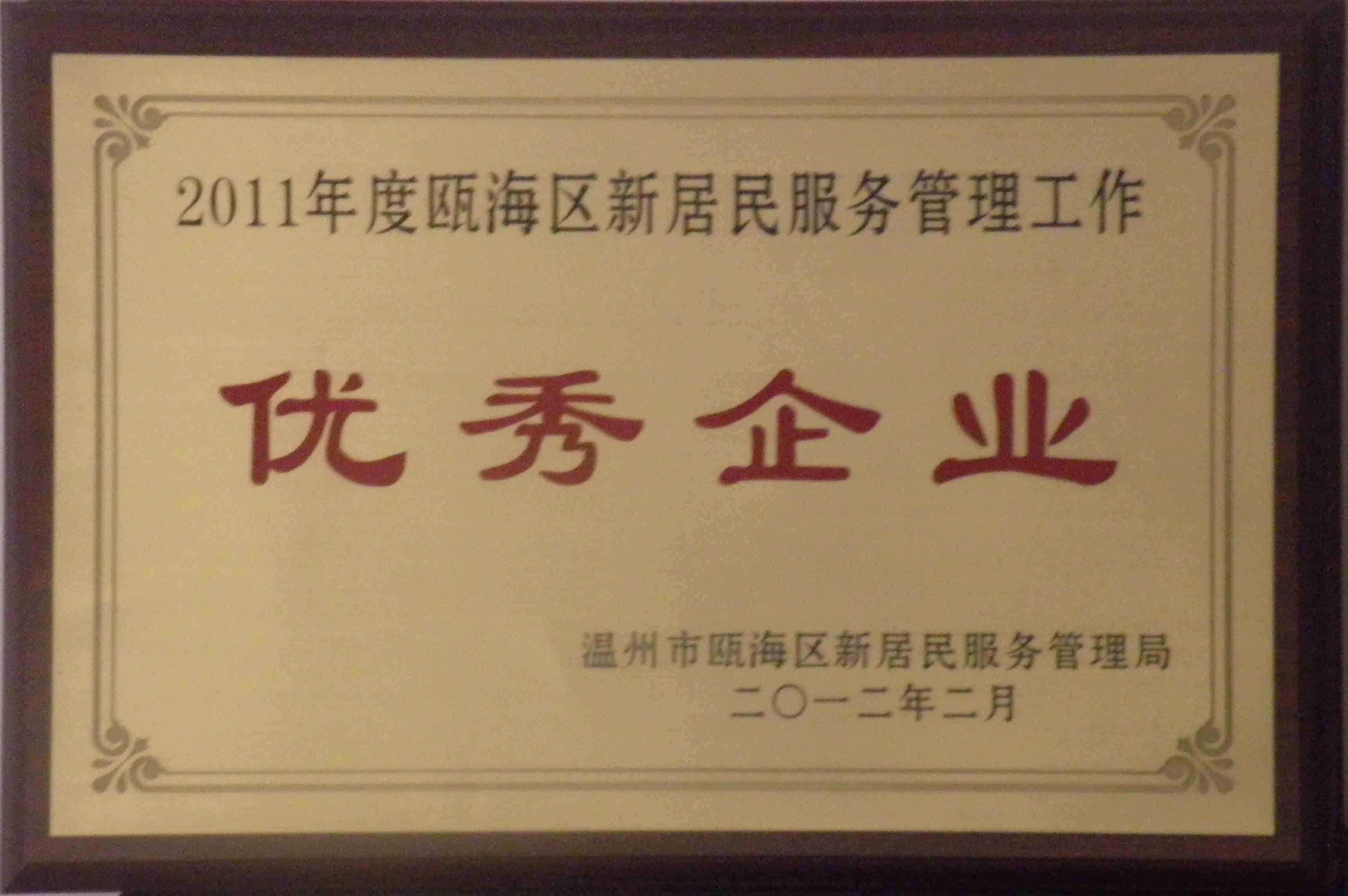 甌海區(qū)新居民服務(wù)管理工作優(yōu)秀企業(yè)