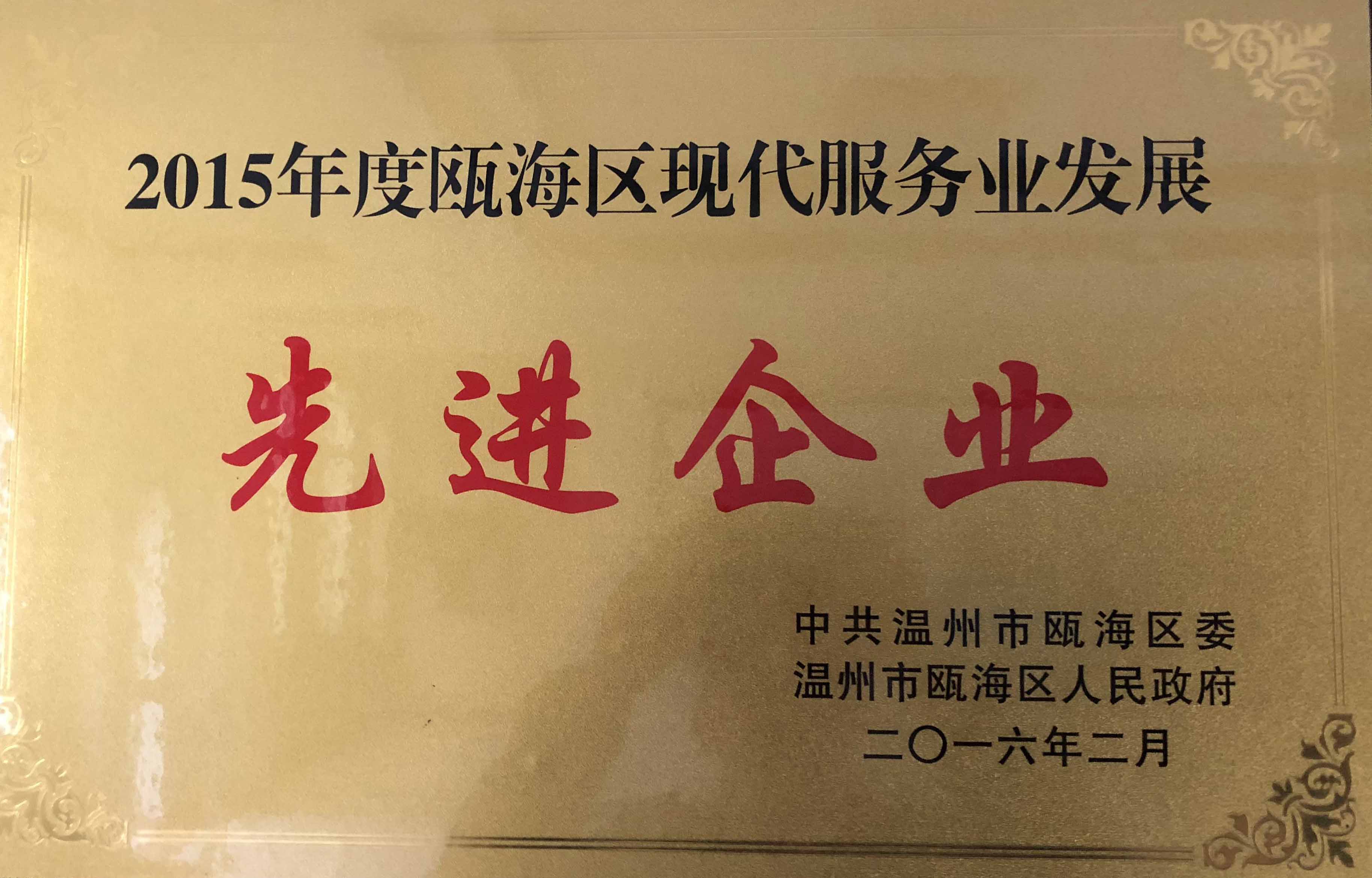 甌海區(qū)現(xiàn)代服務(wù)業(yè)發(fā)展先進(jìn)企業(yè)