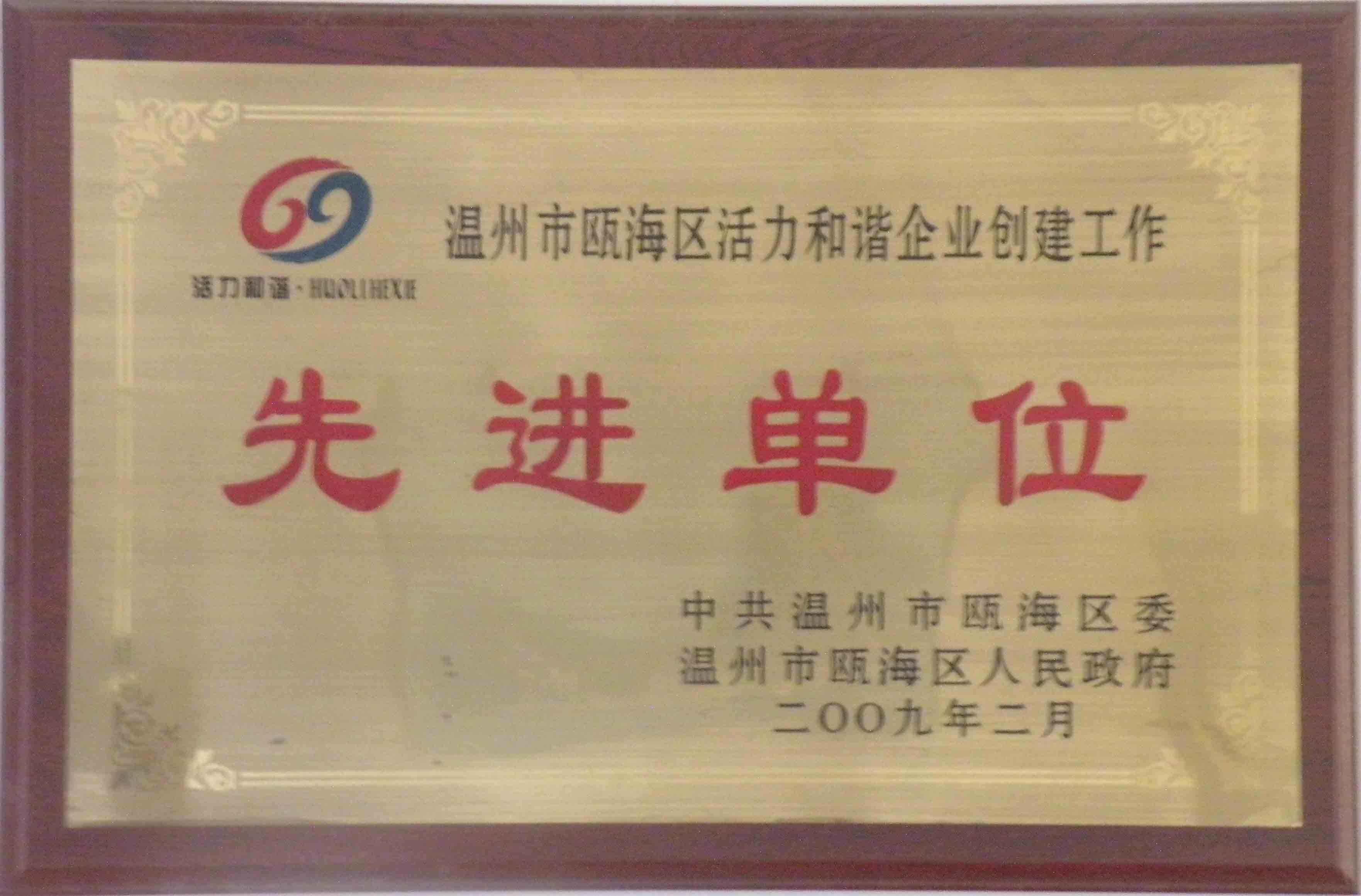 溫州市甌海區(qū)活力和諧企業(yè)創(chuàng)建工作先進(jìn)單位
