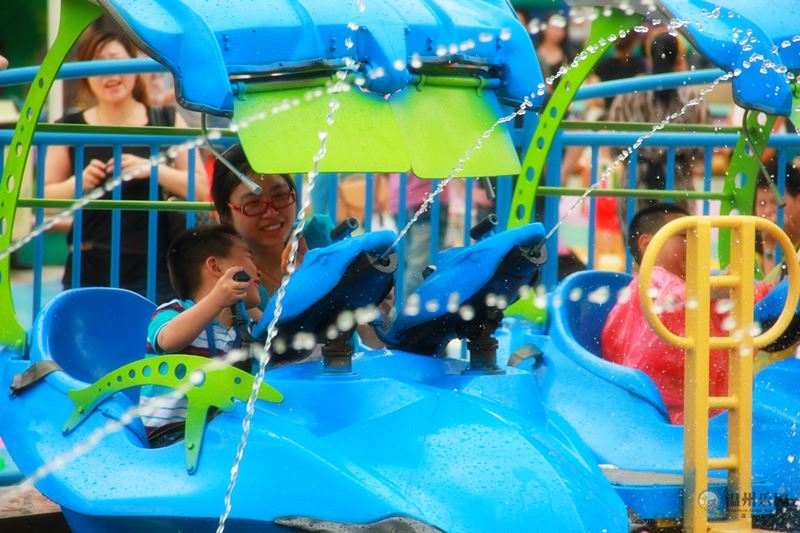 Shark Island is a rotating fighting class tourist attractions. 12 spacecraft around the center of the island rotation (2.5r/min). Center of the island's five sharks around the heart of rotation (7r/min). The island has goals, seals, turtles, bears, etc. Visitors take the spacecraft through the spacecraft's water gun shooting targets with sharks, the target was hit, resulting in a variety of actions, such as water, action, wow. Center of the island was hit by a small shark, spray water column. Sharks keep it to your water in a jet. Fountain pool water once every 10 seconds.